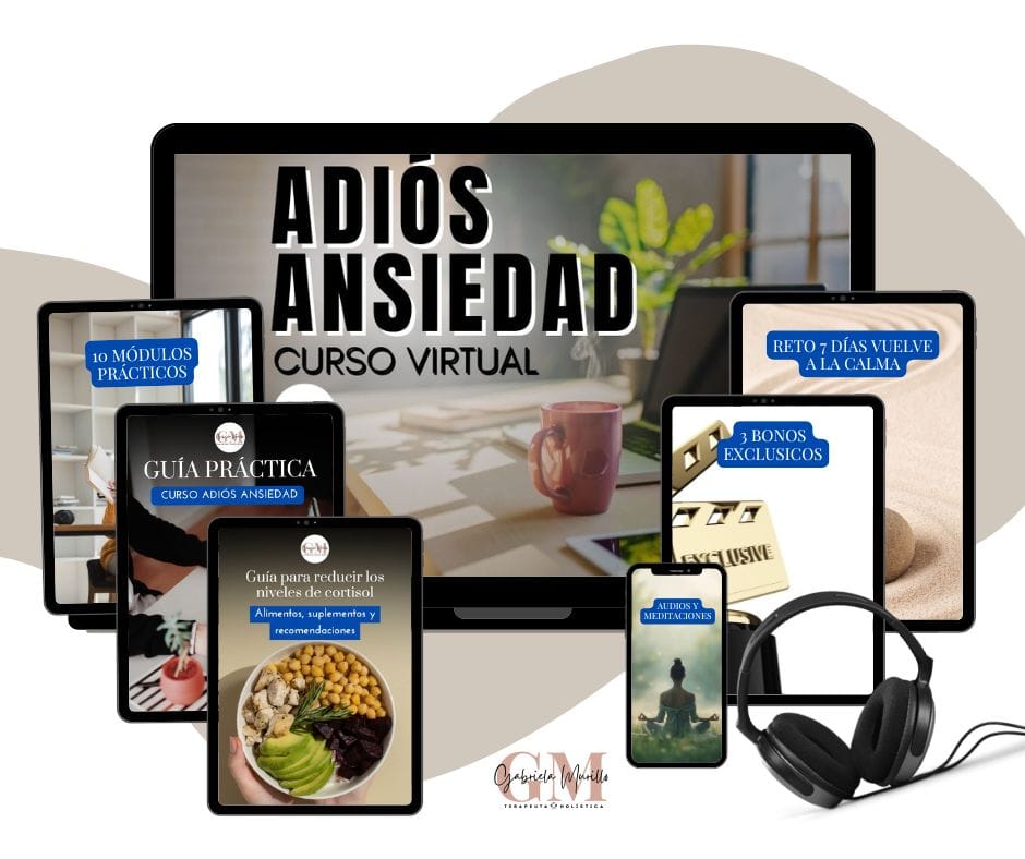 Curso Adiós Ansiedad es un proceso práctico, amoroso y profundo creado para ayudarte a salir del ciclo de la ansiedad y recuperar la calma desde el cuerpo, la mente y las emociones.