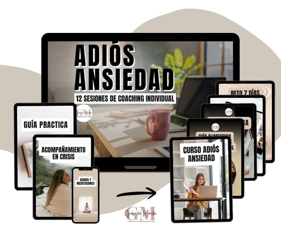 Recibirás acompañamiento individual y personalizado de 12 sesiones de coaching para la ansiedad en vivo vía zoom. Además tendrás acceso al curso virtual Adiós ansiedad en una plataforma con audios, videos, guías prácticas y mucho más, también tendrás acompañamiento en momentos de crisis