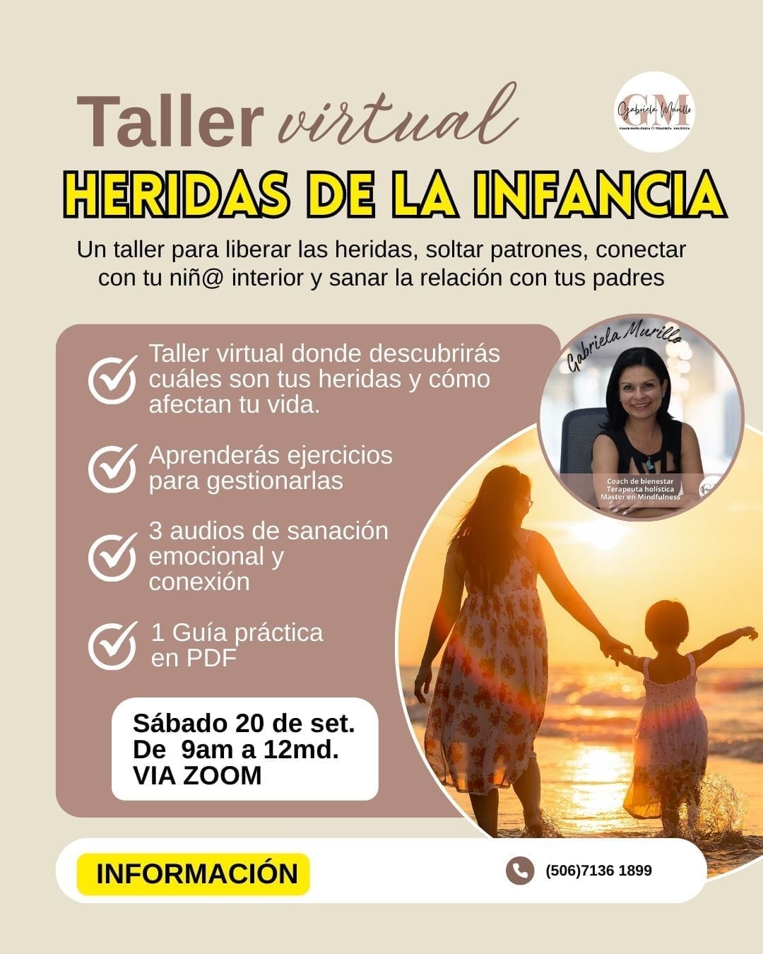 El taller será el 20 de setiembre a las 9am por medio de ZOOM conéctate y empieza tu proceso de sanación.